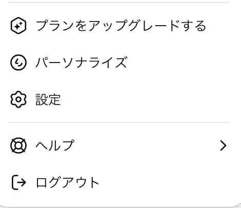 ChatGPTのサイドバー左下をクリックすると以下の画面になります。そこから「プランをアップグレードする」を選ぶと、ChatGPT Businessプランへの変更画面が出てきます。