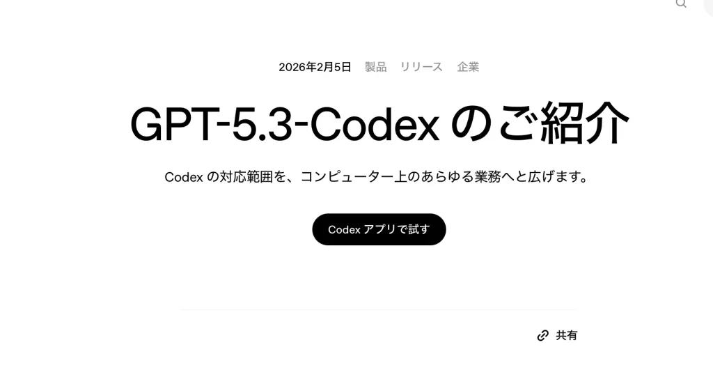 OpenAIはGPT-5.3-Codexを「最も有能なコーディングエージェント」と位置づけています。