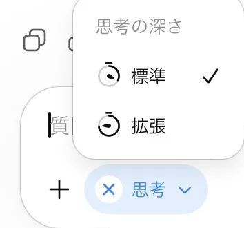 GPT-5.5Thinkingでは、どの深さで考えさせるかも選べるようになりました。より深い思考が必要な場面では思考を「拡張」にすることで、より正確な回答が生成されます。つまり、現在のChat GPTでは、5.3 Instant、5.5 Thinking(標準)、5.5 Thinking(拡張)の三段階から選べるようになったということです。当コラムでは真ん中の5.5 Thinking(標準)から始めることを推奨します。
