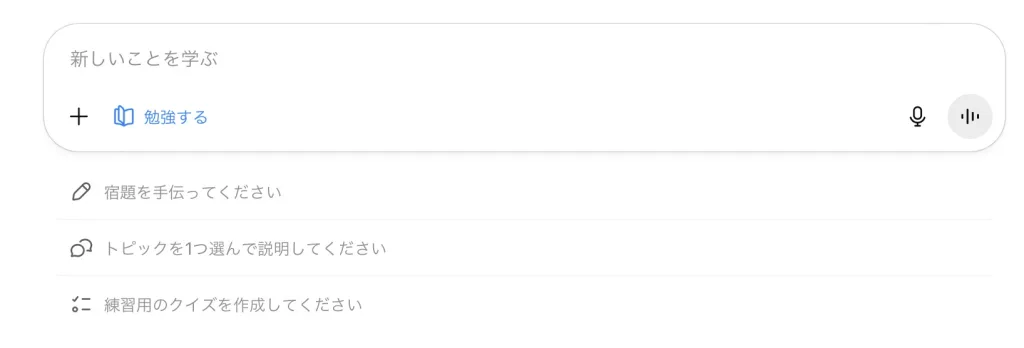 この「勉強する」が表示されればスタディモードです。スタディモードをオンにすると、ChatGPTはユーザーの質問に対していきなり答えを提示するのではなくソクラテス式問答やヒント、自分の考えを振り返るプロンプトなど対話的な手法を使って問題解決に導きます。
